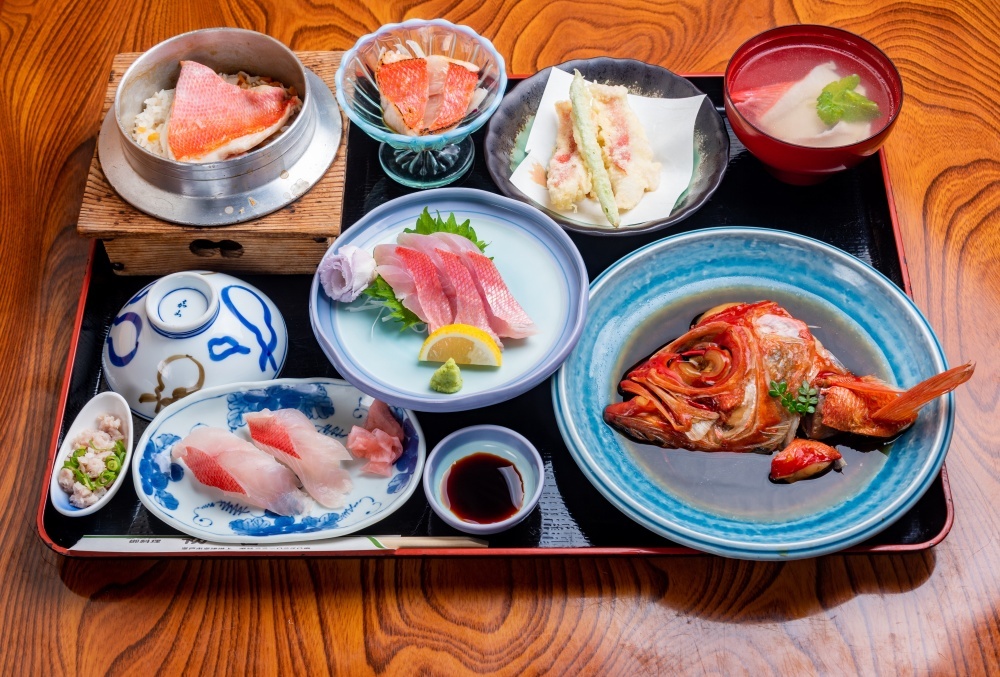 釜めしの他に、煮付けや刺身などの一品物や、お吸い物などがセットになった当店の定番メニューです。